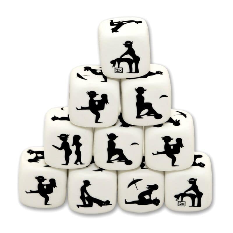 DÉS BLANCS DURS DE 25 MM DE HAUTE QUALITÉ. DÉS DE PASSION ! QUELLE POSITION PRENONS-NOUS AUJOURDHUI ? Profitez de la chance des dés, une excellente solution à lindécision sexuelle. Ils vous surprendront par leur simplicité, vous pourrez les emmener partout et ils vous procureront beaucoup de joie.