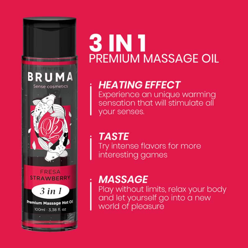 BRUMA – HUILE DE MASSAGE PREMIUM EFFET CHALEUR SAVEUR FRAISE 3 EN 1 – 100 ML