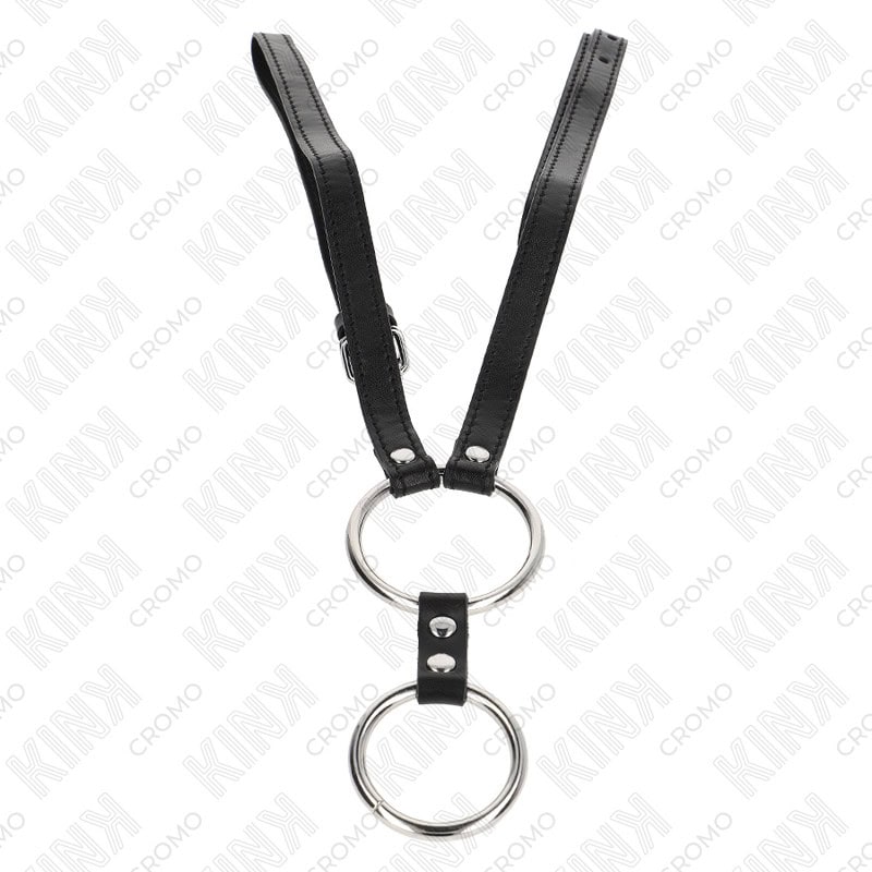KINK – DOUBLE ANNEAU PÉNIS EN MÉTAL 3,8 CM À 5 CM AVEC CEINTURE EN CUIR 112 CM