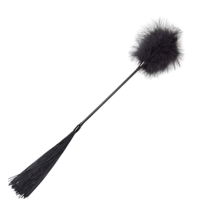 Cest le bon moment pour essayer ce nouveau jouet destiné au plaisir avec un fouet dun côté et des plumes de lautre.