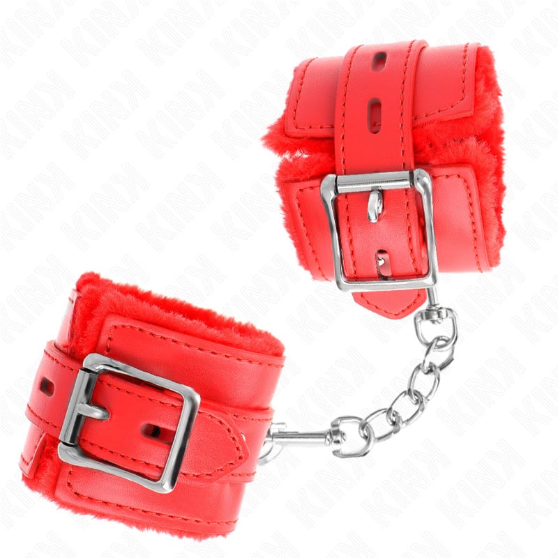 KINK – APPUI-POIGNETS DOUBLÉS DE FOURRURE AVEC TROUS CARRÉS ROUGE ET CEINTURE ROUGE RÉGLABLE 17-29 CM X 6 CM
