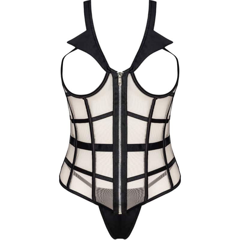 Un ensemble deux pièces composé dun corset sensuel et bustier et dun string noir sexy. Le corset est doté dune fermeture éclair sur le devant, ce qui le rend facile à enfiler. Les couleurs de lensemble sont le noir et le beige, qui créent ensemble une combinaison attrayante. Il convient également de prêter attention aux détails séduisants tels quun col noir ou des ceintures noires disposées de manière à mettre en valeur au mieux la taille. Ce qui ressort le plus de ce corset, ce sont les découpes qui exposent la poitrine. Cela rend lensemble très audacieux et provocateur. Il ny a pas grand-chose à laisser à limagination. Les autocollants pour tétons seront un excellent ajout au jeu et ajouteront un peu de piquant.