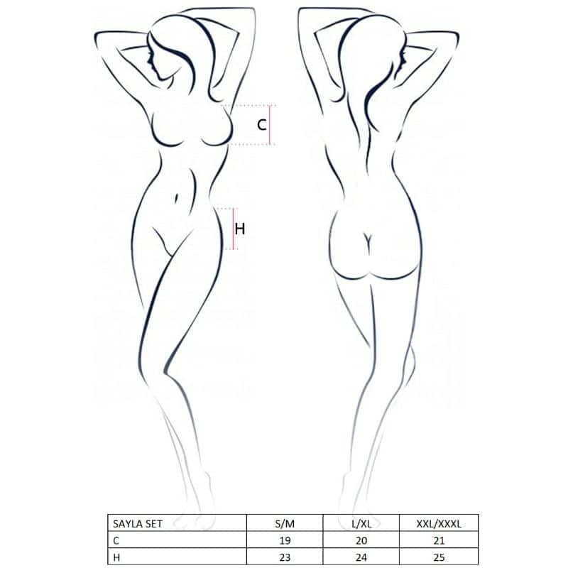 Lensemble de la collection Sayla est un fabuleux ensemble de lingerie au design spectaculairement sexy avec lequel vous deviendrez une bombe de séduction, fabriqué par la prestigieuse marque de lingerie Passion.
