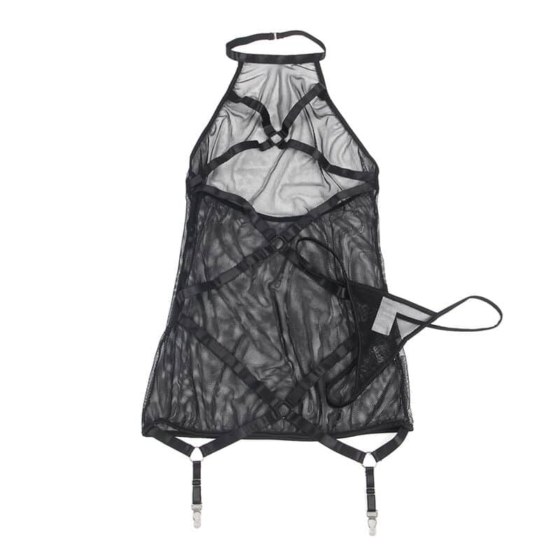 SUBBLIME – VESTIDO TRANSPARENTE CUELLO HALTER NEGRO S/M