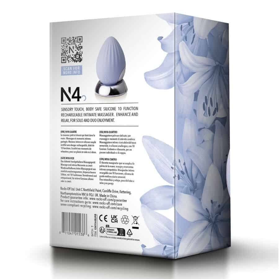 Le Niya N4 de Rocks-Off est un masque intime et sophistiqué, conçu pour offrir une expérience de placement éclairée et relaxante. Son type ergonomique « huevo » sadapte parfaitement à la paume de la main, permettant une utilisation pratique et précise sur les zones sensibles du corps.