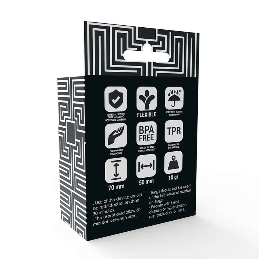 Cet ensemble de deux anneaux est spécialement conçu pour être utilisé simultanément à la base du pénis et à la base des testicules.