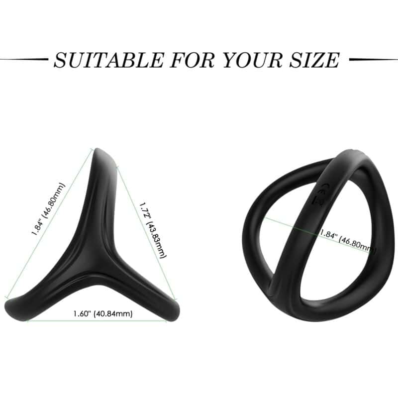 - Trois anneaux extensibles fixent le pénis, les testicules et le bas séparément et fermement, offrant une sensation de serrage totale