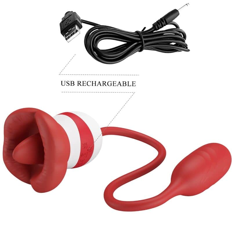 Ce vibromasseur en forme de bouche possède une balle unique à double extrémité qui caresse et une langue qui lèche.